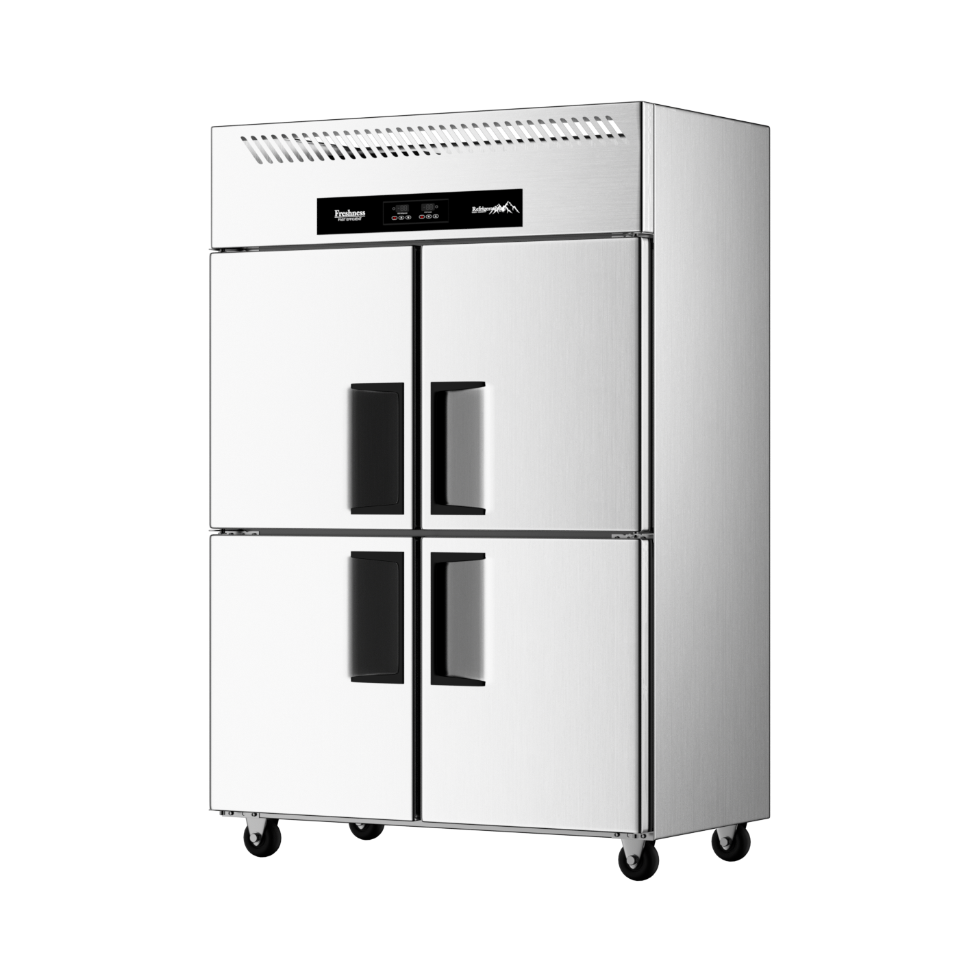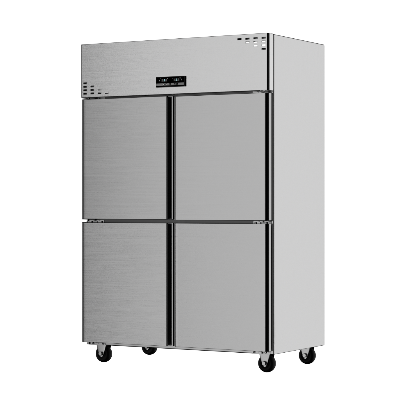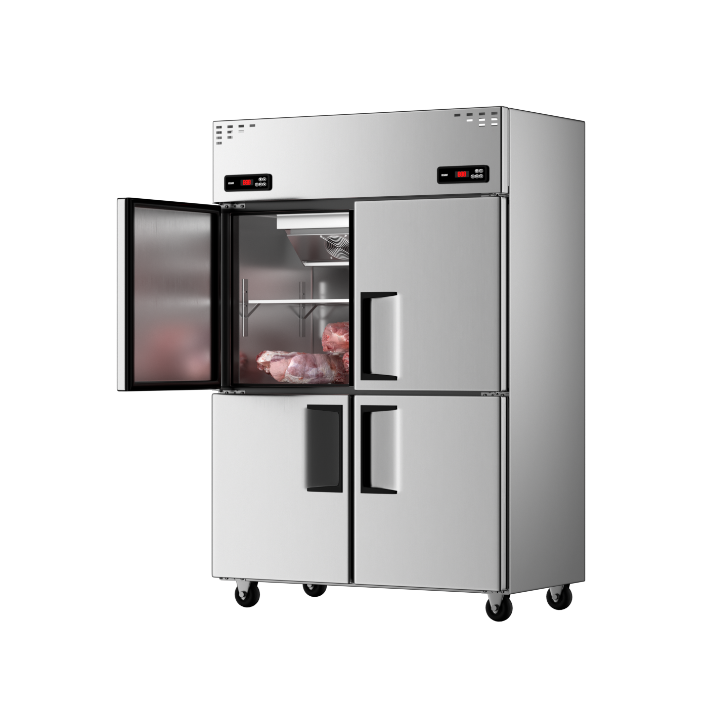 1.Style type: commercial stainless steel vertical four-door freezer, double-temperature freezer for kitchen refrigeration (single-temperature refrigeration/single-temperature refrigeration is also available).